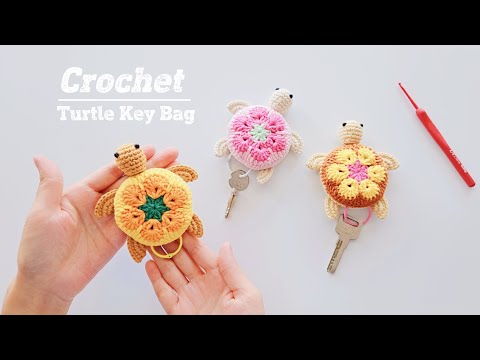 Crochet turtle key bag